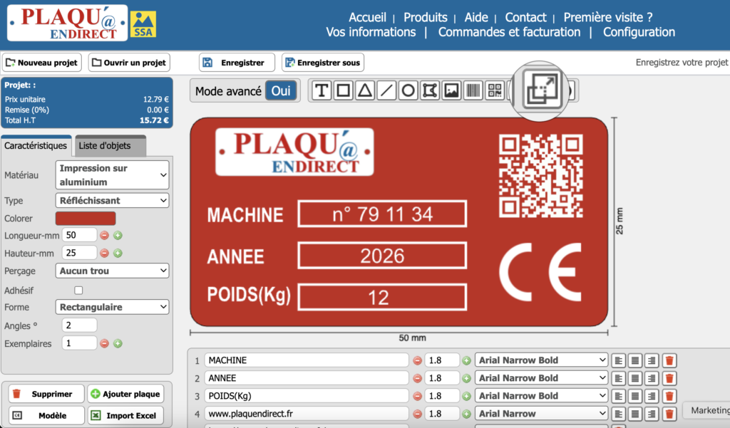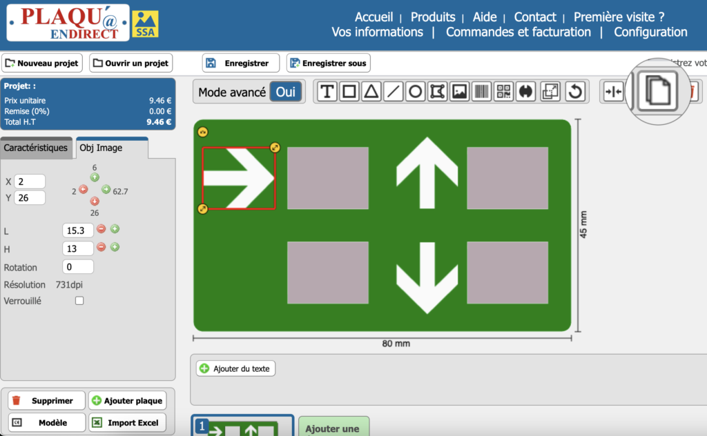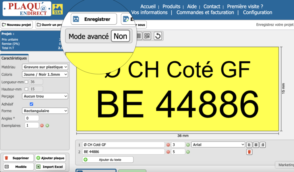 Commander des plaques ne devrait pas vous prendre trop de temps. C’est pourquoi notre outil en ligne comprend des fonctionnalités pratiques qui vous permettent de travailler plus rapidement, de réduire les tâches répétitives et de préparer votre commande en quelques étapes seulement.